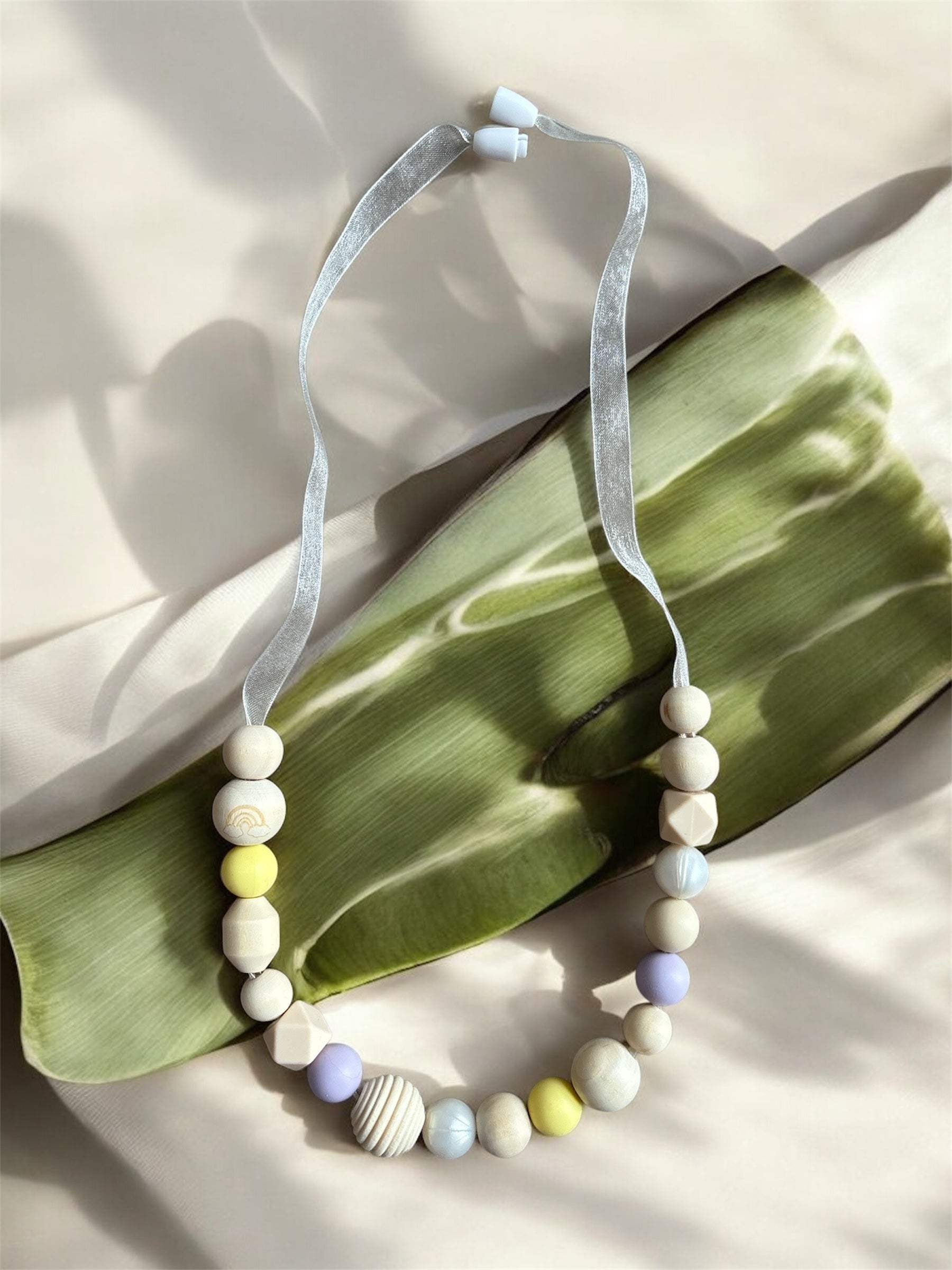 Chaque bijou est entièrement fait main, avec des perles de silicone douces et colorées, pensées stimuler les sens de bébé tout en apportant une jolie touche de tendresse.